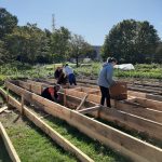 It was a busy week on the farm! On Saturday, a small but mighty volunteer group from the Gap Factory store in Bayers Lake, along with three farm stewards and one extra-special little helper, came out to help build market beds and fill them with soil. The Gap Factory store volunteers with community groups twice a year, and they thoroughly enjoyed getting their hands (and shoes and clothing) dirty with us. The market beds seem to be empty pits for soil, which means it takes many people, many hours to fill beds… so we really appreciated everyone’s help last weekend!